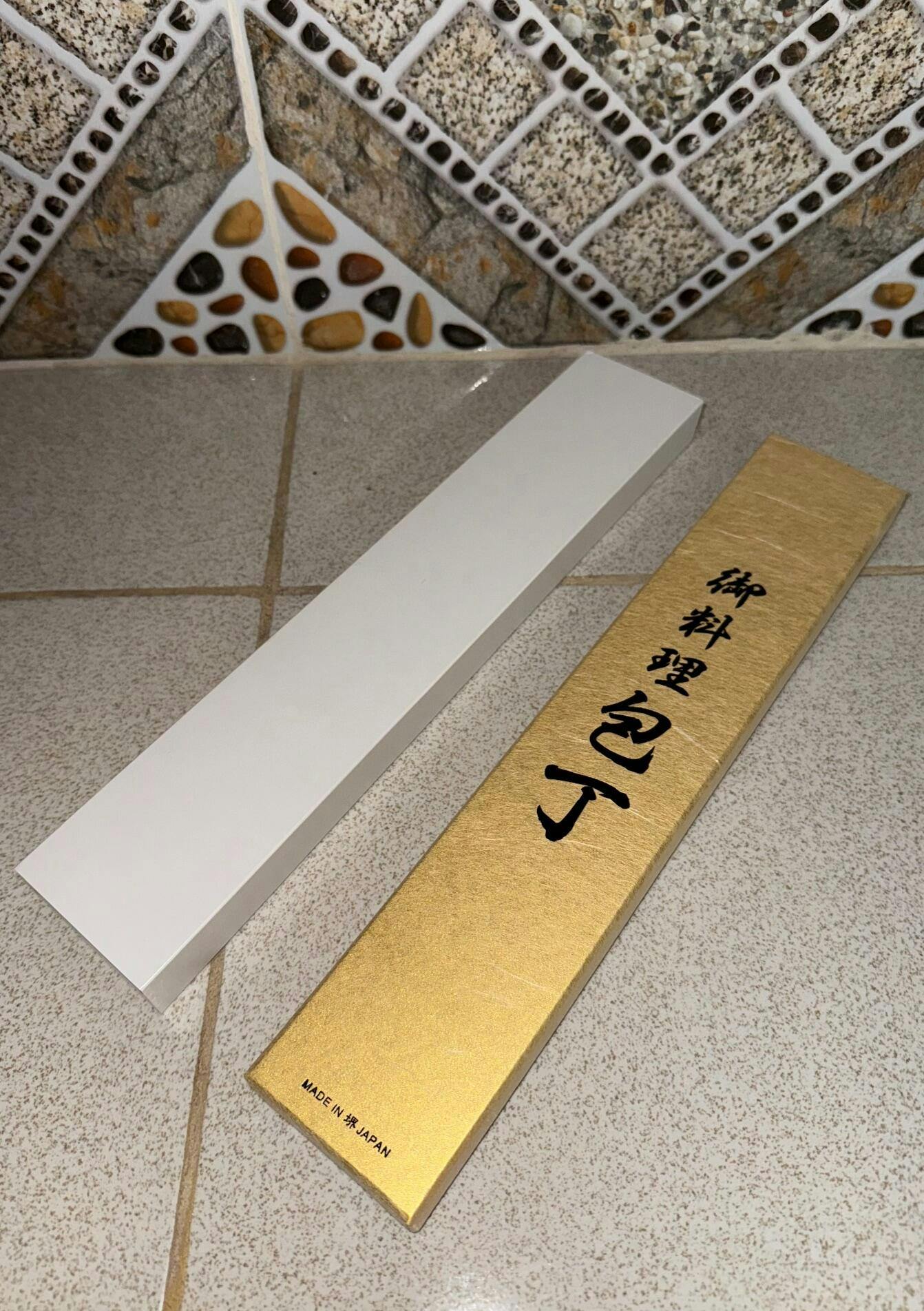 Product was in perfect condition when it arrived. I never expected to be so excited about a Gyuto chef knife, but here we are. The first thing I tried was something very simple, slicing Spam for breakfast. By itself, my old knife would squish it a bit and leave an ugly mess. But with this handcrafted chef knife, I hardly needed any force at all. I well glided through as if I was cutting butter, yielding me perfectly clean slices. Even in my home kitchen, it felt like a proper chef’s tool.