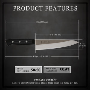 [Open-Box] Syosaku Japanese Chef Knife Molybdenum Vanadium Clad Stainless Steel w/o Bolster, Gyuto 7-inch (180mm) Dishwasher Safe - ships from California