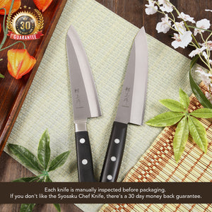 2. RAZOR SHARPNESS - Ready to use out of the box with ruthless sharpness. The Molybdenum-Vanadium Stainless Steel core (HRC 55-57) is sandwiched with the super rust resistant 13 Chrome Stainless Steel. It gives exceptional sharpness, edge retention, durability, and ease of sharpening at the same time. You can easily feel your upgraded technique level just by using a Syosaku Knife.