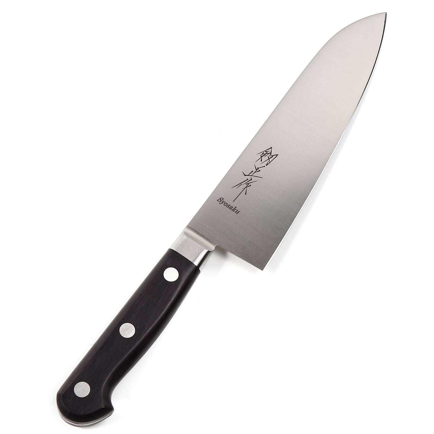 Syosaku Japanese Multi Purpose Best Sharp Kitchen Chef Knife INOX AUS-8A Stainless Steel Black Pakkawood Handle, Santoku 7-inch (180mm)