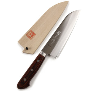 Syosaku Japanese Multi Purpose Best Sharp Kitchen Chef Knife VG-1 Gold Stainless Steel Mahogany Handle, Santoku 6.5-inch (165mm) with Magnolia Sheath