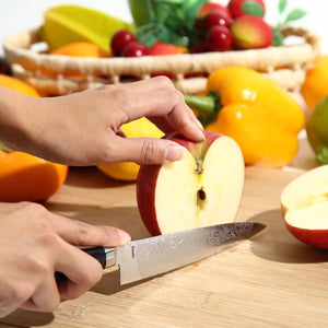 3. VERSATILITY - Ideal for everyday chefs handling daily kitchen tasks, whether professional or nonprofessional. Ultra-sharp medium size blade can be used as a smaller chef's knife or a larger paring knife. You can do any cutting tasks with one knife. You can use it as a sushi knife too. It is double-edged, so it doesn't matter if you are right-handed or left-handed. Do not use granite countertops.