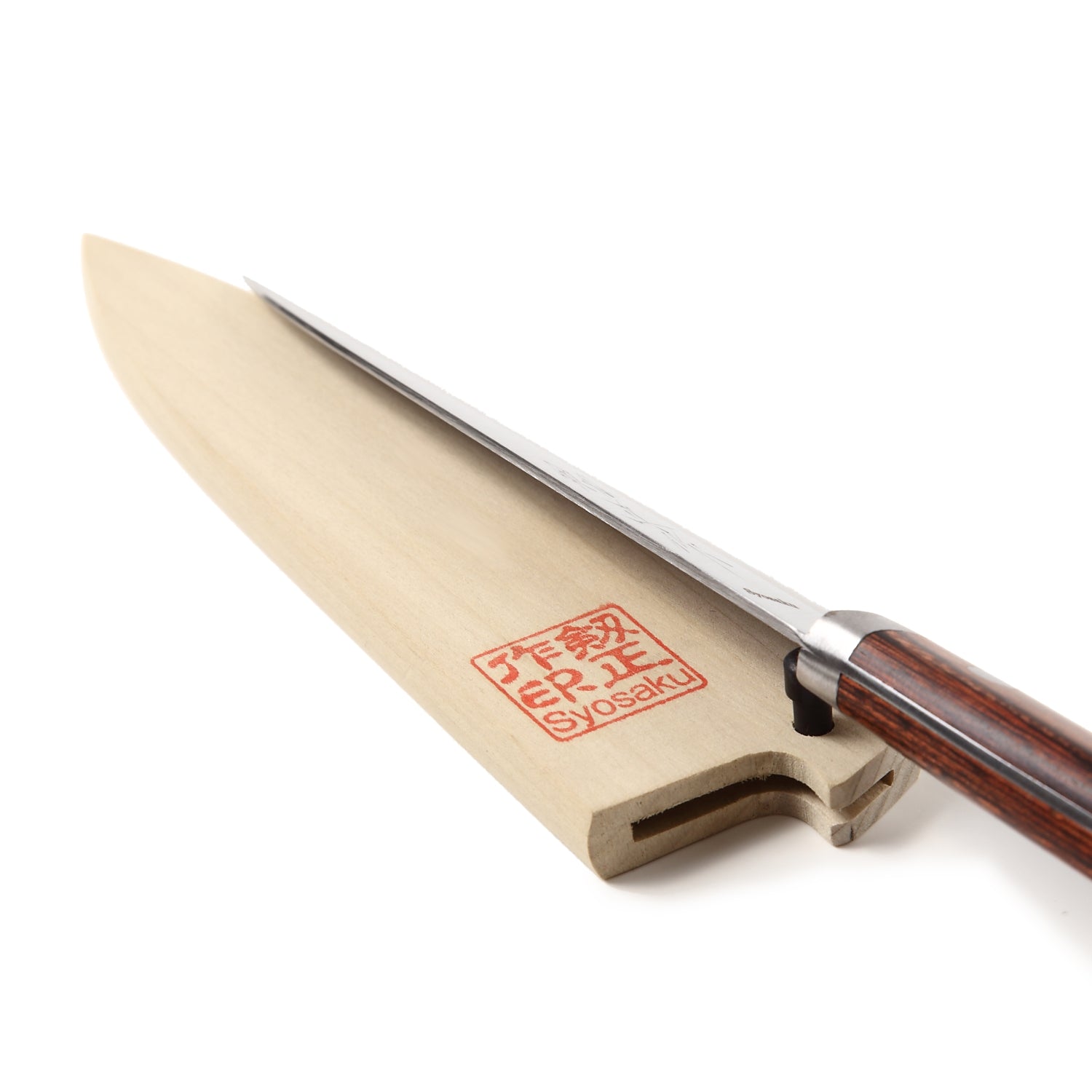 Syosaku Japanese Petty Best Sharp Kitchen Chef Knife VG-1 Gold Stainless Steel Mahogany Handle, 5.3-inch (135mm) with Magnolia Wood Sheath Saya Cover