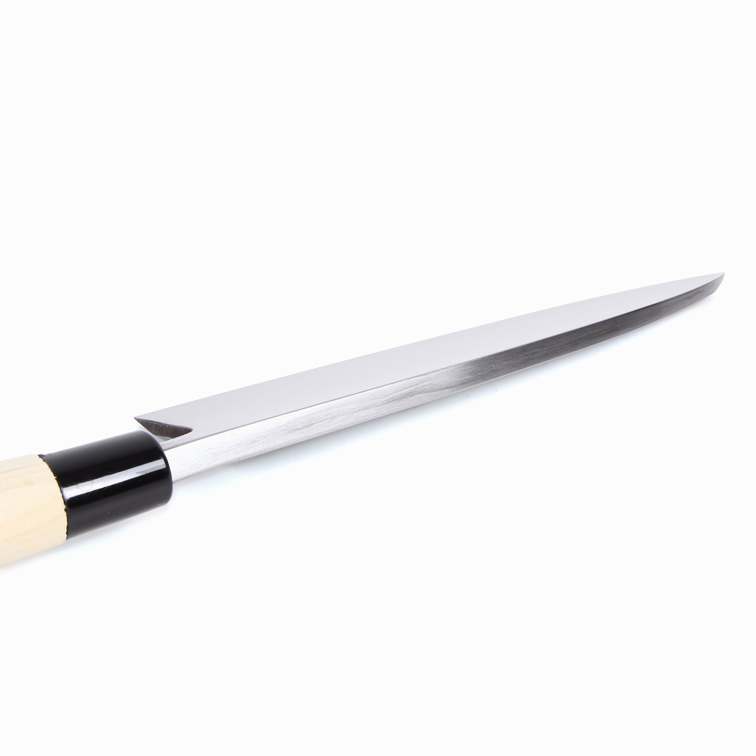 3. SUSHI FILET SPECIALIST - The Deba knife is designed to butcher and fillet whole fish. The blade is made according to the Japanese tradition, with Shinogi on the front side and Urasuki on the back. The ultra sharpness and the heft of the blade make it effortless to cut through the heads and bones of whole fish. You can use it for chicken and other meats, too. The ergonomically designed D-shape Magnolia wood handle and perfectly balanced construction make you comfortable at each use.