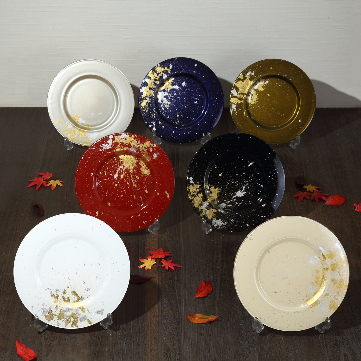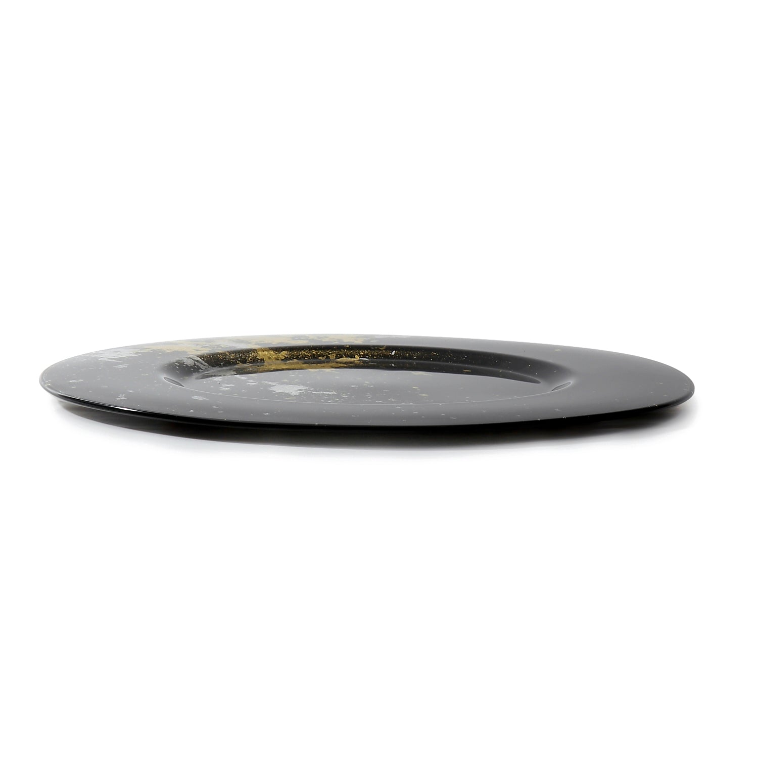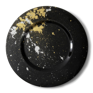 Syosaku Japanese Urushi Glass Charger Plate 13.9-inch (35cm) Jet Black with Gold Leaf, Dishwasher Safe