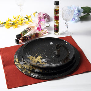 1. MORE THAN A PLATE - The one and only glamorous Jet Black color with incredible depth is beyond comparison. The gorgeous gold leaf painting is handmade one by one by Japanese traditional Urushi artists. This is a glass plate like no other. It brightens up your table, bringing excitement even before the food is served. Share the enjoyment with your guests and loved ones. Dishwasher safe.