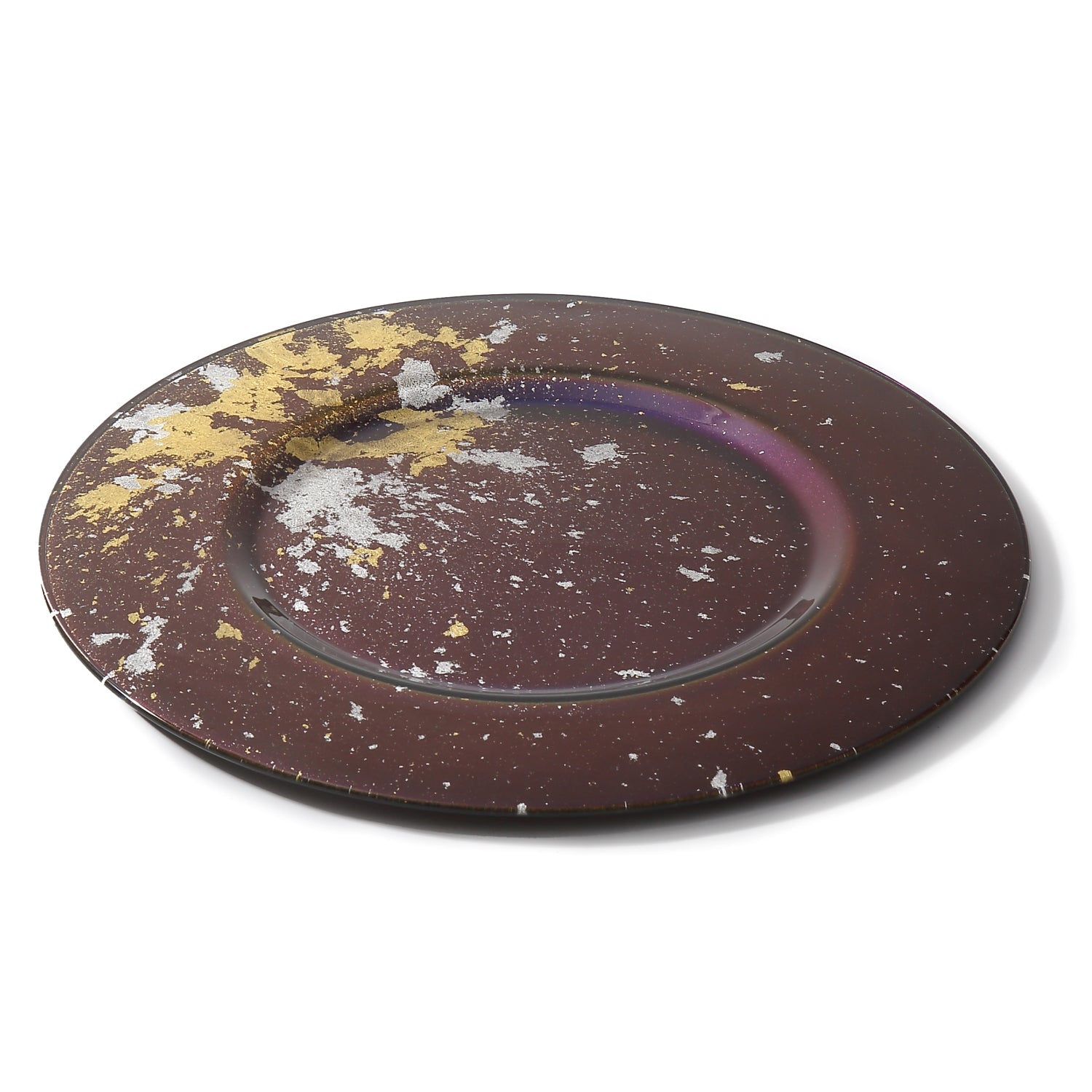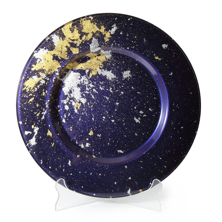 Syosaku Japanese Urushi Glass Charger Plate 13.9-inch (35cm) Majestic Blue with Gold Leaf, Dishwasher Safe