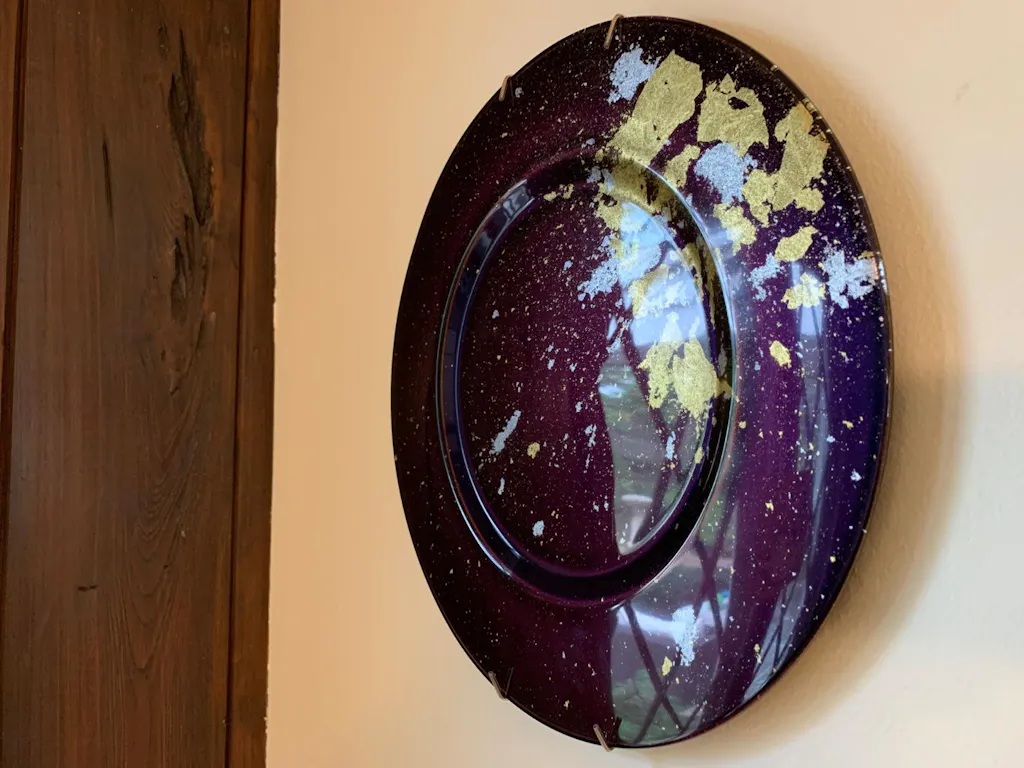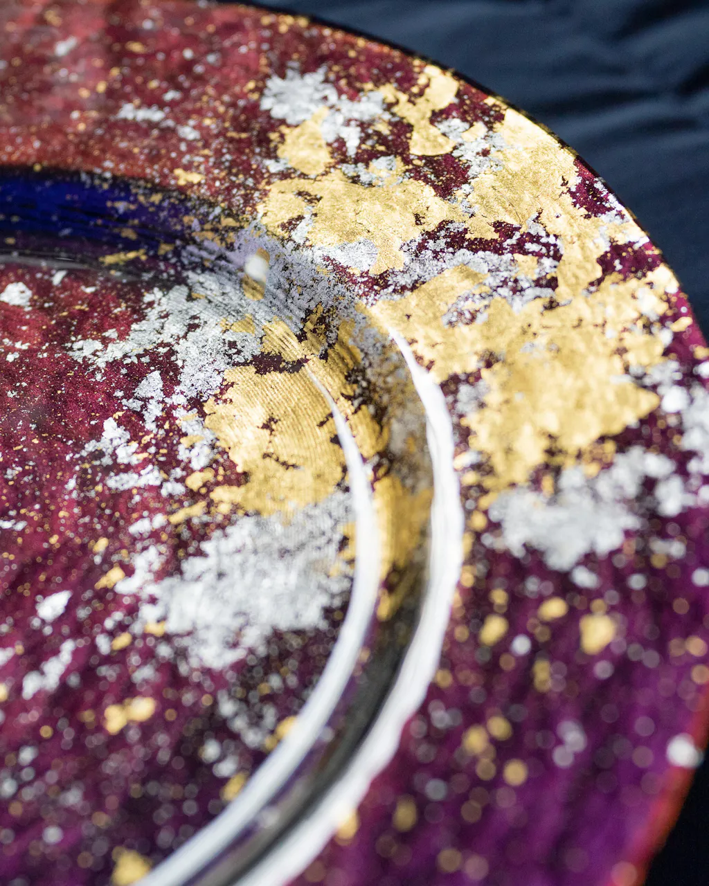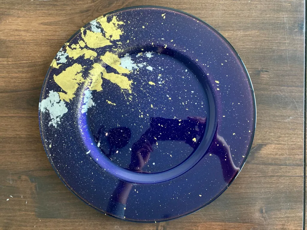 1. MORE THAN A PLATE - The one and only glamorous Majestic Blue color with incredible depth is beyond comparison. The color changes mysteriously depending on the light and view angle, due to polarizing particles included in the lacquer. The gorgeous gold leaf painting is handmade one by one by Japanese traditional Urushi artists. This is a glass plate like no other. It brightens up your table, bringing excitement even before the food is served. Share the enjoyment with your loved ones.