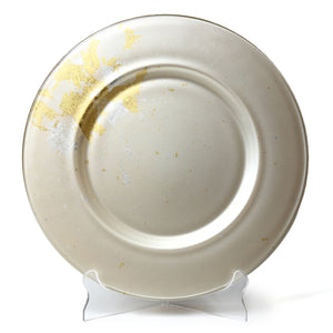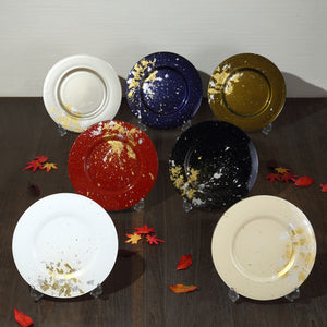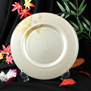 Syosaku Japanese Urushi Glass Charger Plate 13.9-inch (35cm) Majestic White with Gold Leaf, Dishwasher Safe