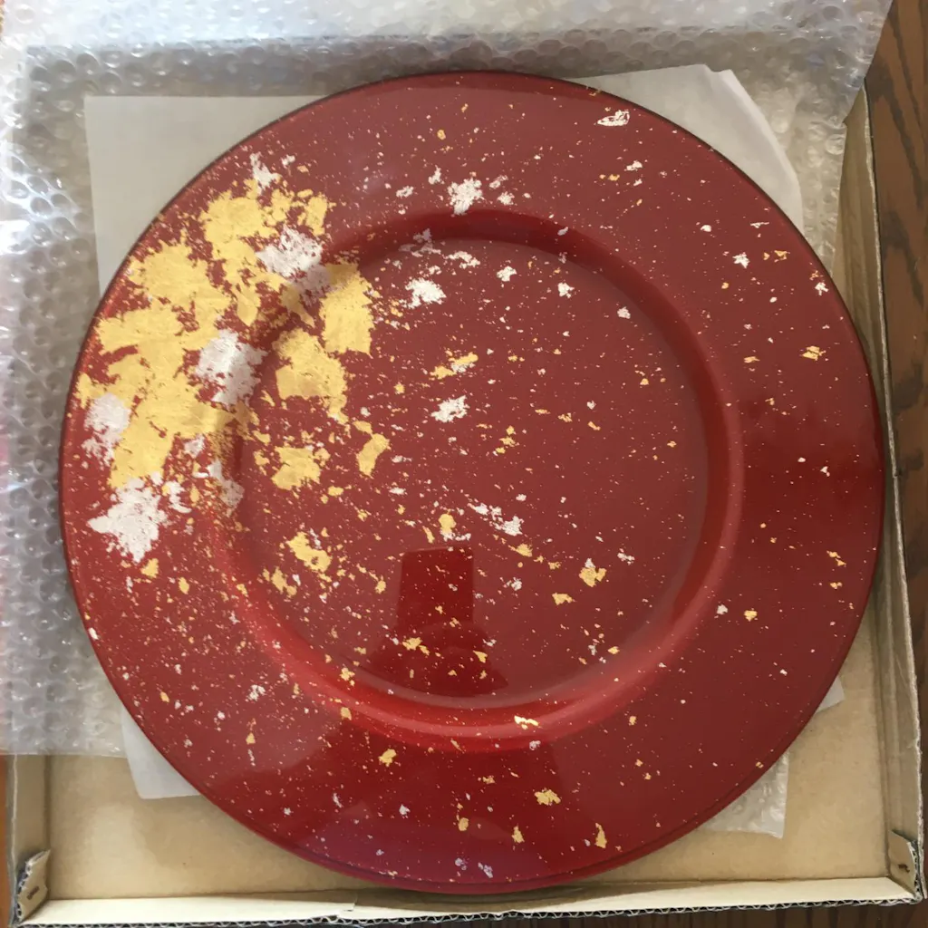 1. MORE THAN A PLATE - The one and only glamorous Vermilion color with incredible depth is beyond comparison. The gorgeous gold leaf painting is handmade one by one by Japanese traditional Urushi artists. This is a glass plate like no other. It brightens up your table, bringing excitement even before the food is served. Share the enjoyment with your guests and loved ones. Dishwasher safe.