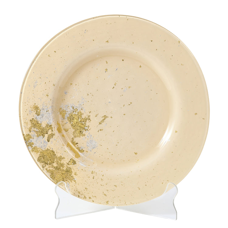 Syosaku Japanese Urushi Glass Dinner Plate 12.5-inch (32cm) Light Beige with Gold Leaf, Dishwasher Safe