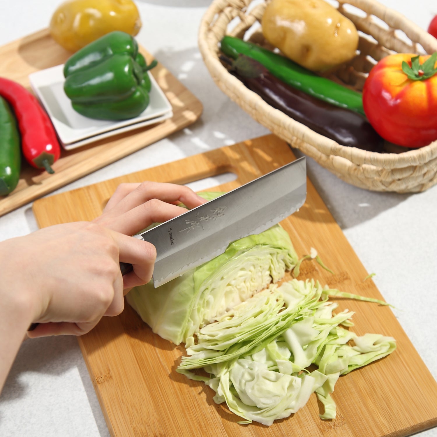 My Syosaku-Japan Nakiri knife is a true joy to use, and my go-to knife whenever I have any vegetables or meat to slice. Its razor-sharp edge and perfect balance in my hand makes slicing and dicing FUN -- it's the best way to describe the experience having such a fine tool to use in my cooking!"